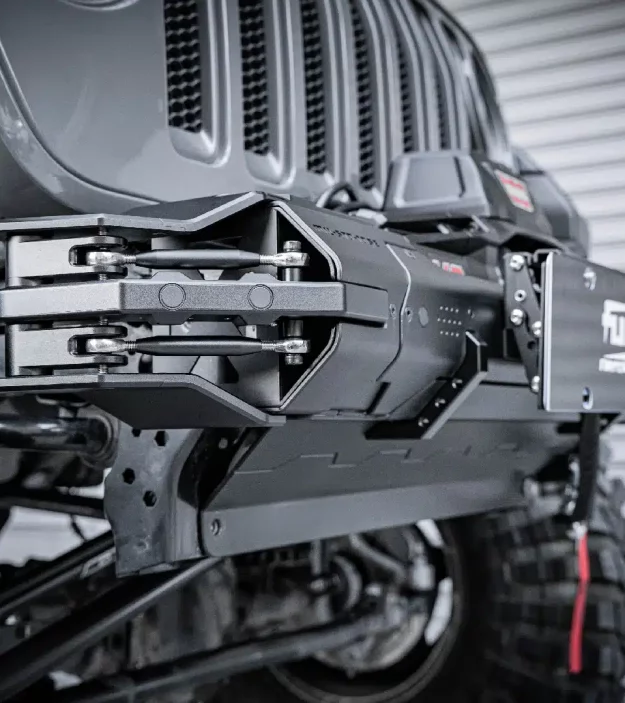 Díky CNC řemeslnému zpracování a mechanickému montážnímu designu kombinuje tento nárazník lehkou konstrukci materiálu s odolným, bezešvým designem. Přední nárazník obsahuje standardně spodní smykovou desku, která zajišťuje vynikající ochranu a vyvážený vzhled.