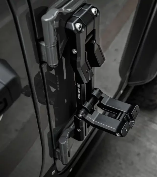 Žebřík navržený s ohledem na mechanickou montáž vyvažuje estetickou přitažlivost s funkčním pohodlím a nabízí ergonomický a robustní krok pro snadný přístup k vašemu vozidlu. Vyměnitelná instalace zajišťuje žádné poškození vašeho Jeepu, protože využívá původní montážní polohy vozidla pro bezproblémové uchycení. Tento žebřík je dokonalou kombinací praktické funkčnosti a stylového designu, což z něj činí zásadní doplněk pro každého nadšence do terénu.