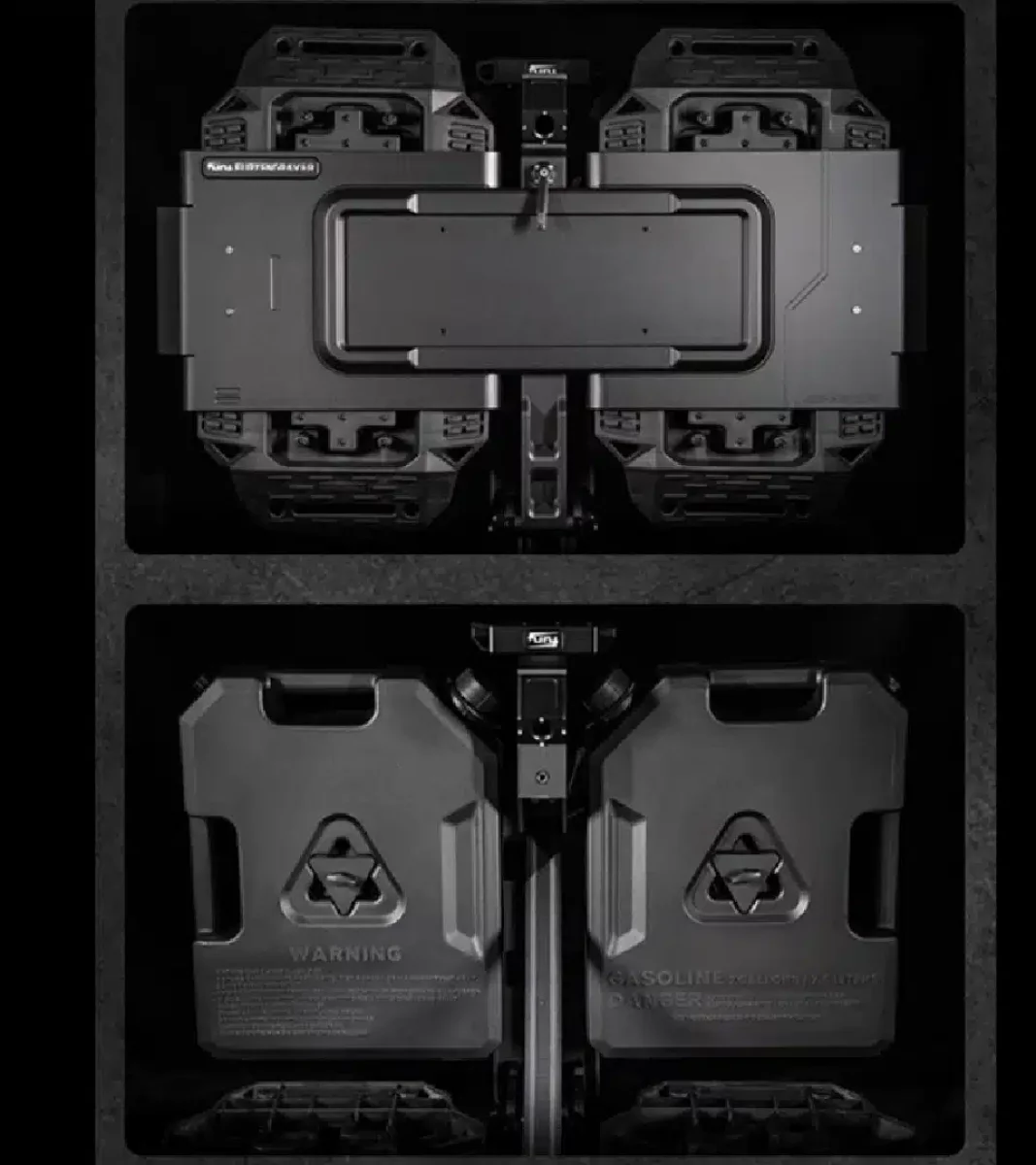 Sada je vybavena vestavěným zajišťovacím mechanismem, který bezpečně drží trakční desky a palivové plechovky, což zabraňuje jejich uvolnění na drsných terénech. Obsahuje také dvě 7,5litrové palivové plechovky a rozšiřitelné boční panely, které poskytují dostatek úložného prostoru pro základní venkovní vybavení, jako jsou hasicí přístroje, lopaty a vlečné popruhy.