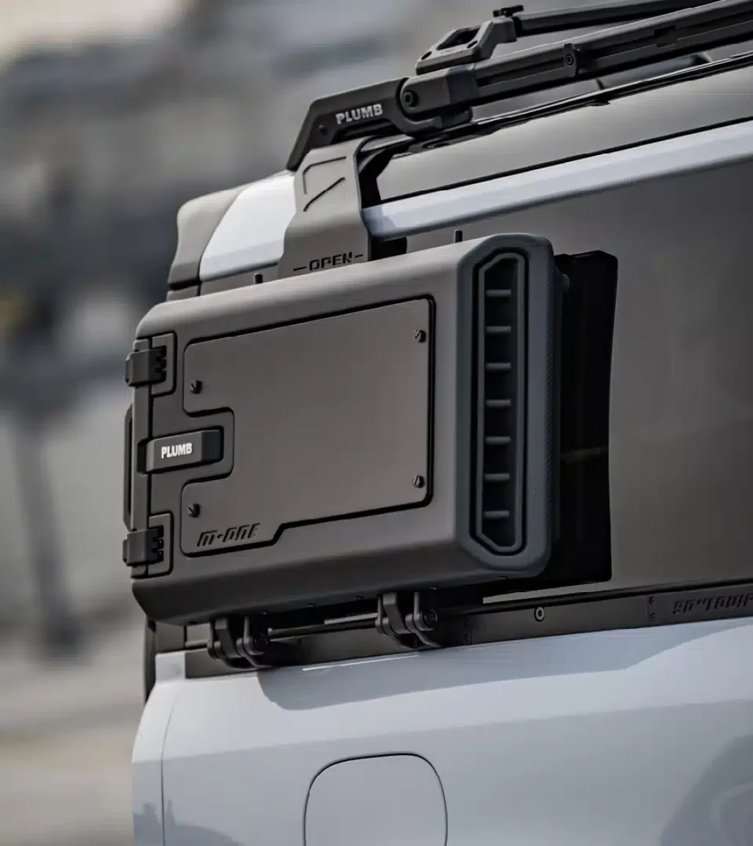 Toto všestranné skladovací řešení, vyrobené z prémiových uhlíkových vláken a slitin hliníku a hořčíku, se transformuje na praktickou provozní platformu nebo čtyřčlenný venkovní stůl. Sada je navržena pro bezproblémovou integraci s modely Defender 90 a obsahuje montážní držáky, rozšiřující boxy, skládací venkovní židle, klíče a kempingová světla. Při zavření se krabice dokonale hodí k vašemu vozidlu, čímž se velikost zmenší o polovinu ve srovnání s původním bočním boxem. Vestavěný spoiler minimalizuje hluk větru, což z něj činí dokonalého off-road společníka