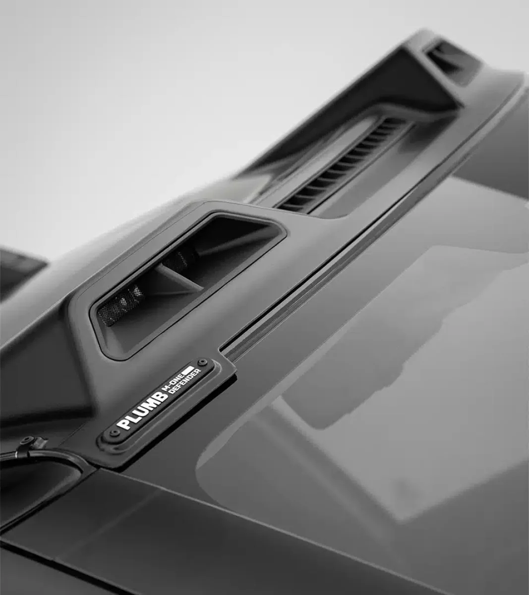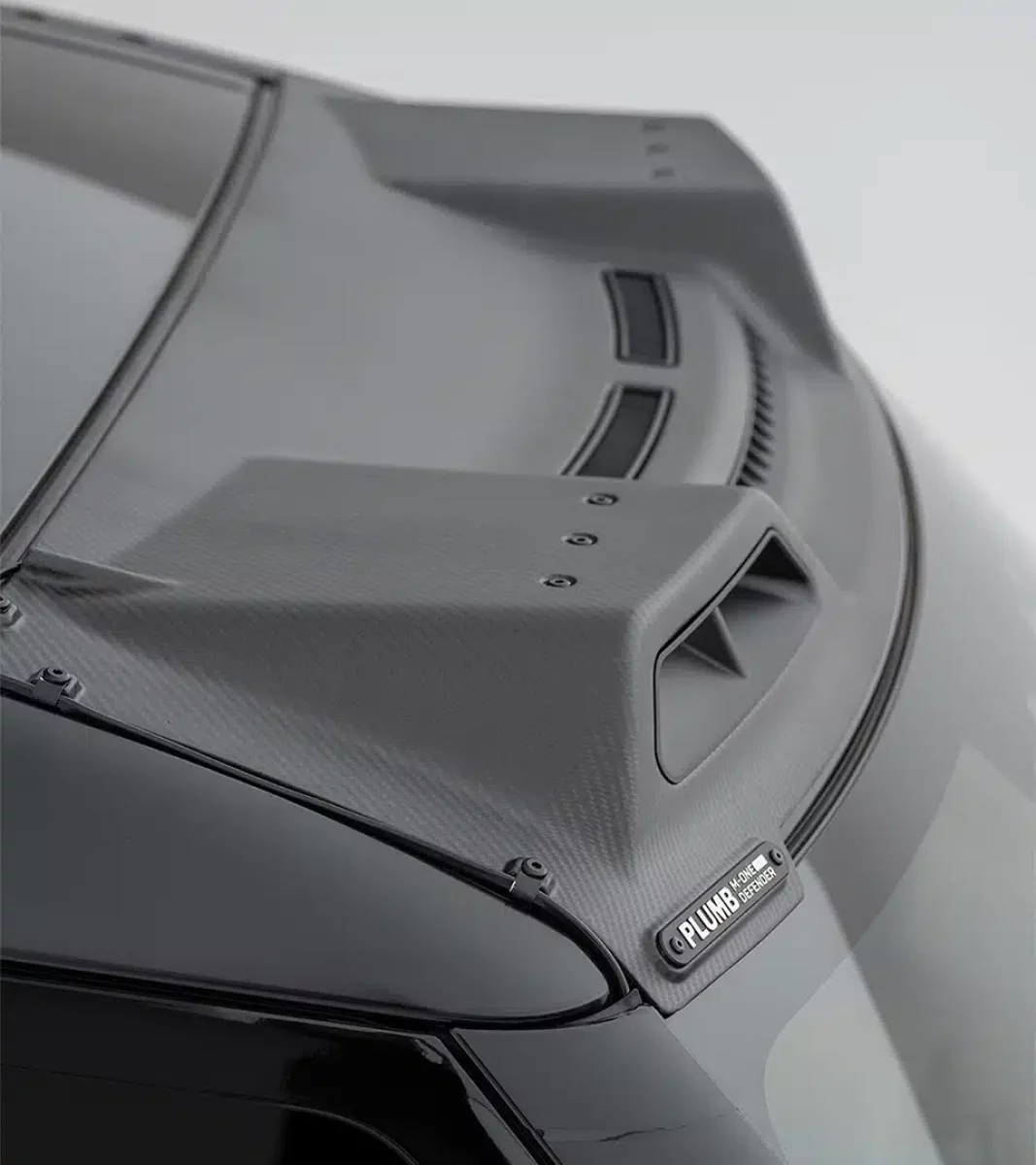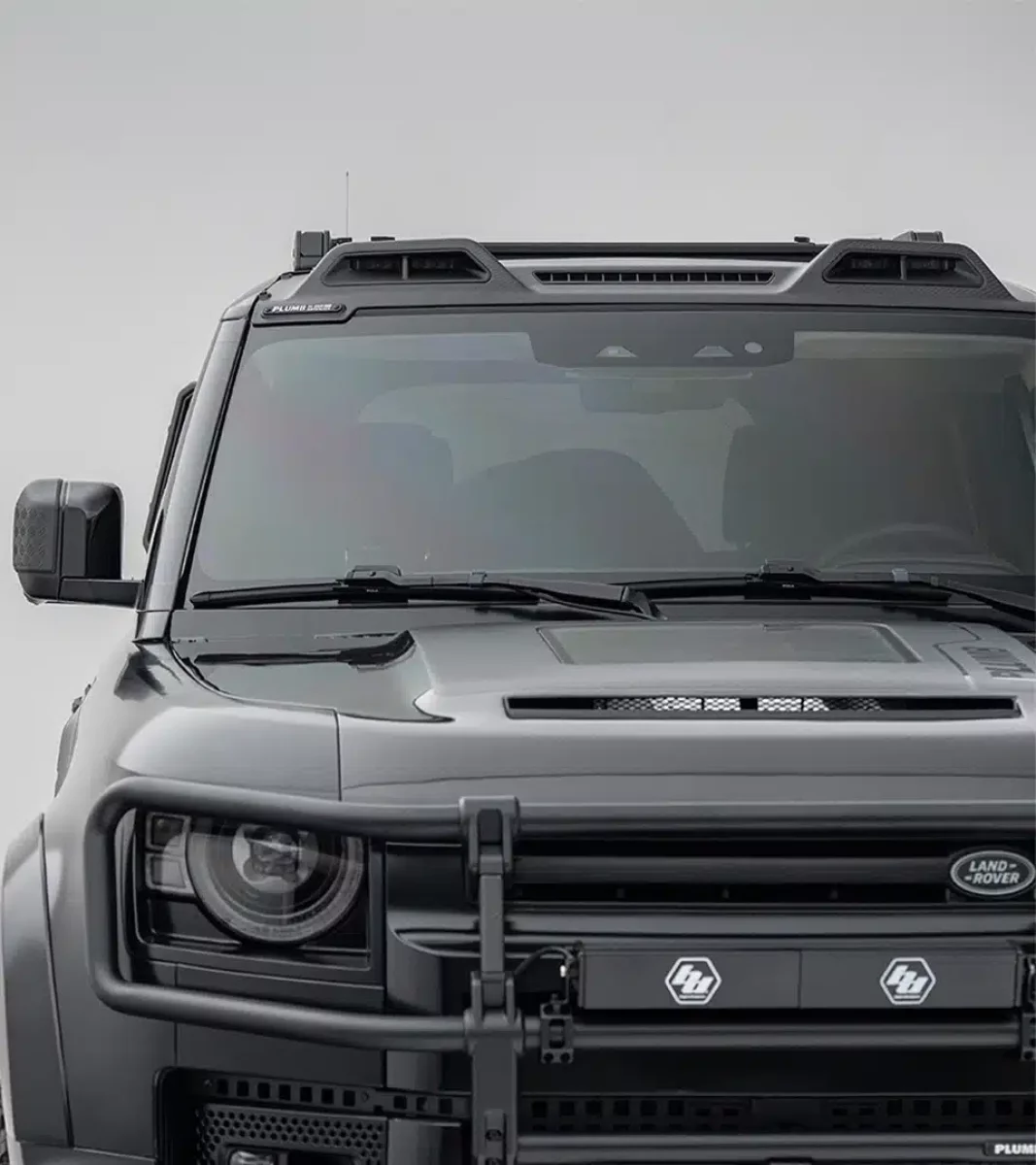 Vyrobeno výhradně ze suchých uhlíkových vláken, hlavní střešní světlo pouzdro je standardně dodáváno v polohmotné povrchové úpravě. Pro různé barvy těla Defender může být na zakázku namalován tak, aby odpovídal čistému vzhledu v továrním stylu.
