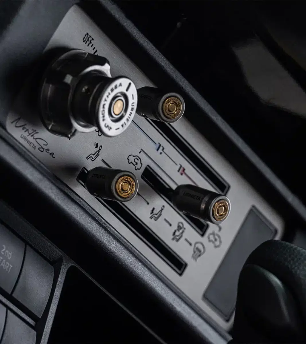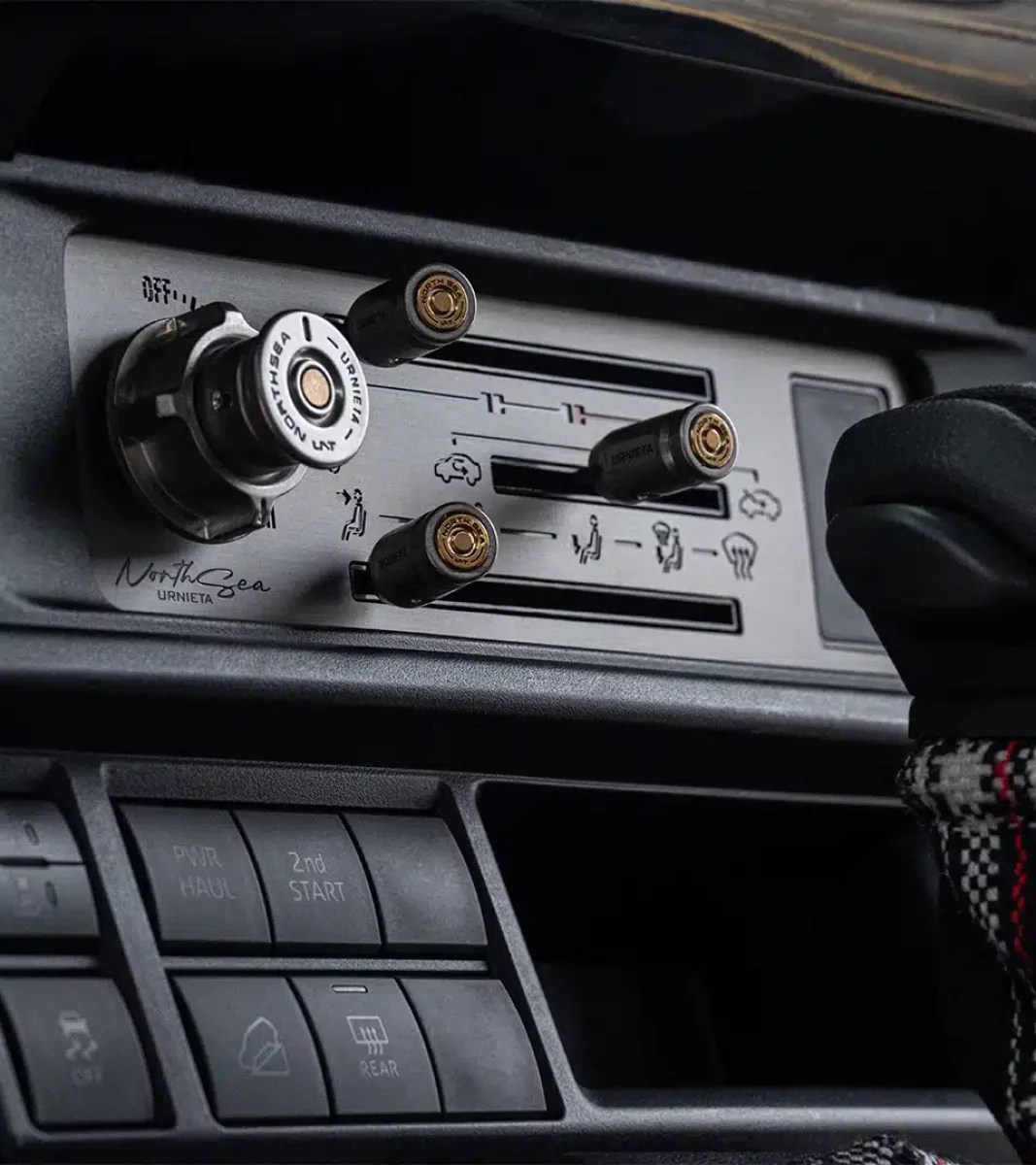 Značky polohy jsou zakončeny detaily s gravírováním koroze, které nabízejí ostrou metalickou strukturu a jasnou viditelnost, ve dne i v noci. Tento panel, který je navržen tak, aby vydržel a byl navržen tak, aby zapůsobil, nově definuje vintage ovládání s moderní hranou.