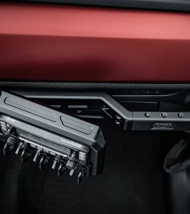 Equipped with a four-way auxiliary switch system, the radio control panel ensures compatibility with popular radio models like Yaesu 7900/7900R and ICOM2730, addressing essential off-road communication needs.