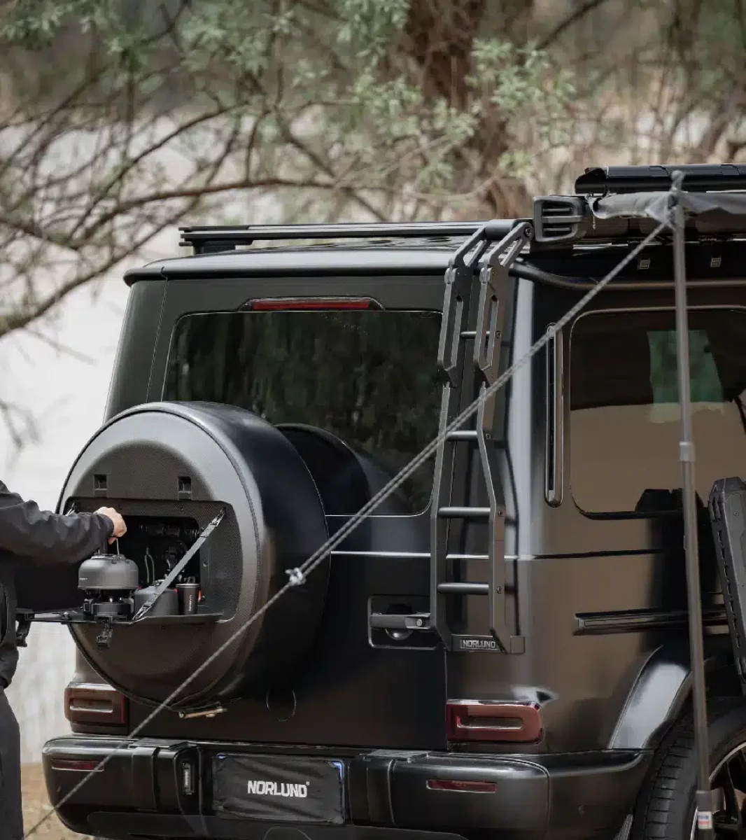 The cover not only adds durability but enhances the vehicle’s overall aesthetic appeal. The kit also includes an extended tabletop and an integrated storage box, both precision-sculpted from solid aluminum-magnesium alloy. This ensures a clean, seamless design while maintaining strength and resistance to wear.