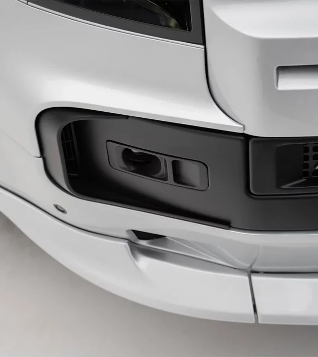 The front bumper kit offers a complete OEM-stylereplacement with an integrated winch mount andflip-up license plate bracket.Its airflow channels enhance intercoolerand brake cooling efficiency.A segmented quick-release lower lip allows easymaintenance and tow-hook access perfect contouringto the Defender’s front profile delivers improvedperformance and a dynamic look.