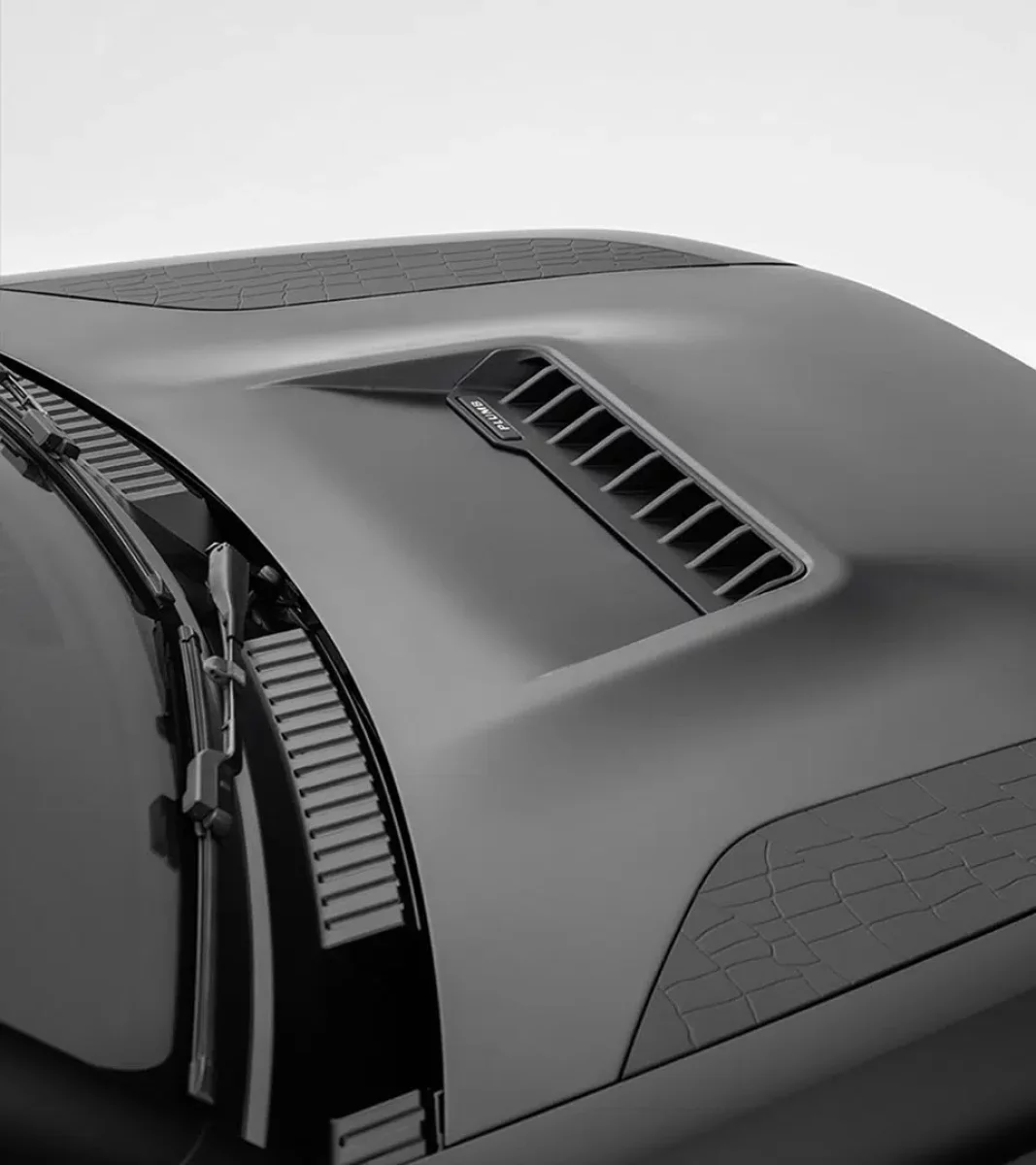 Refined surfacing and new heat vents ensurestable cooling under aggressive driving.The crocodile-texture panel enhances ruggedcharacter and installs as a no-damagereplacement for the factory center garnish.Personal style can be customized throughinterchangeable panel options.