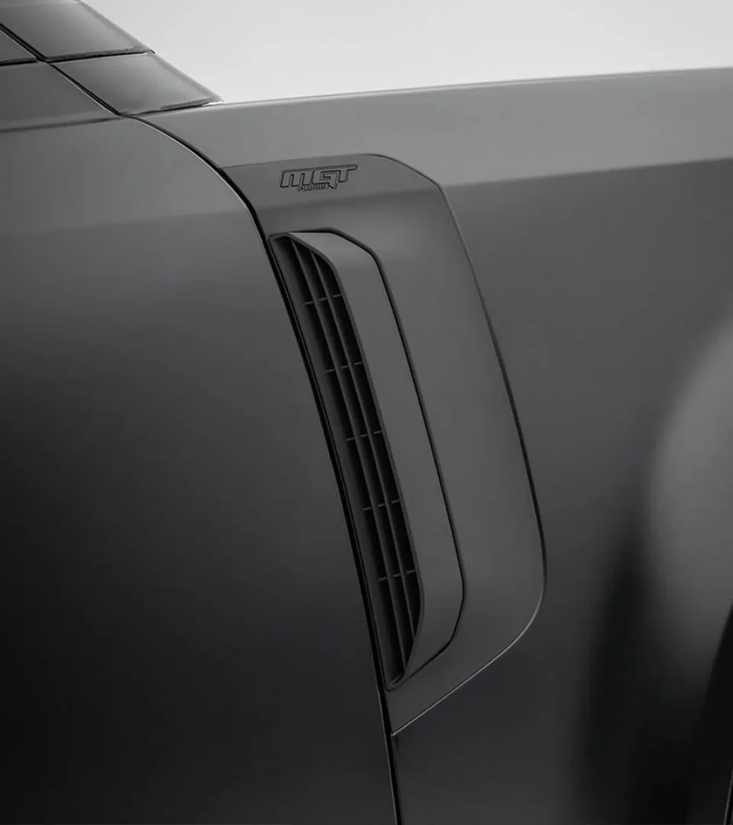 A defining styling element of the “M-GT” kit,the intakepanel amplifies the vehicle’s performance-driven andaggressive visual character.Its design also helps prevent debris from entering thebody cavity and intake duct.