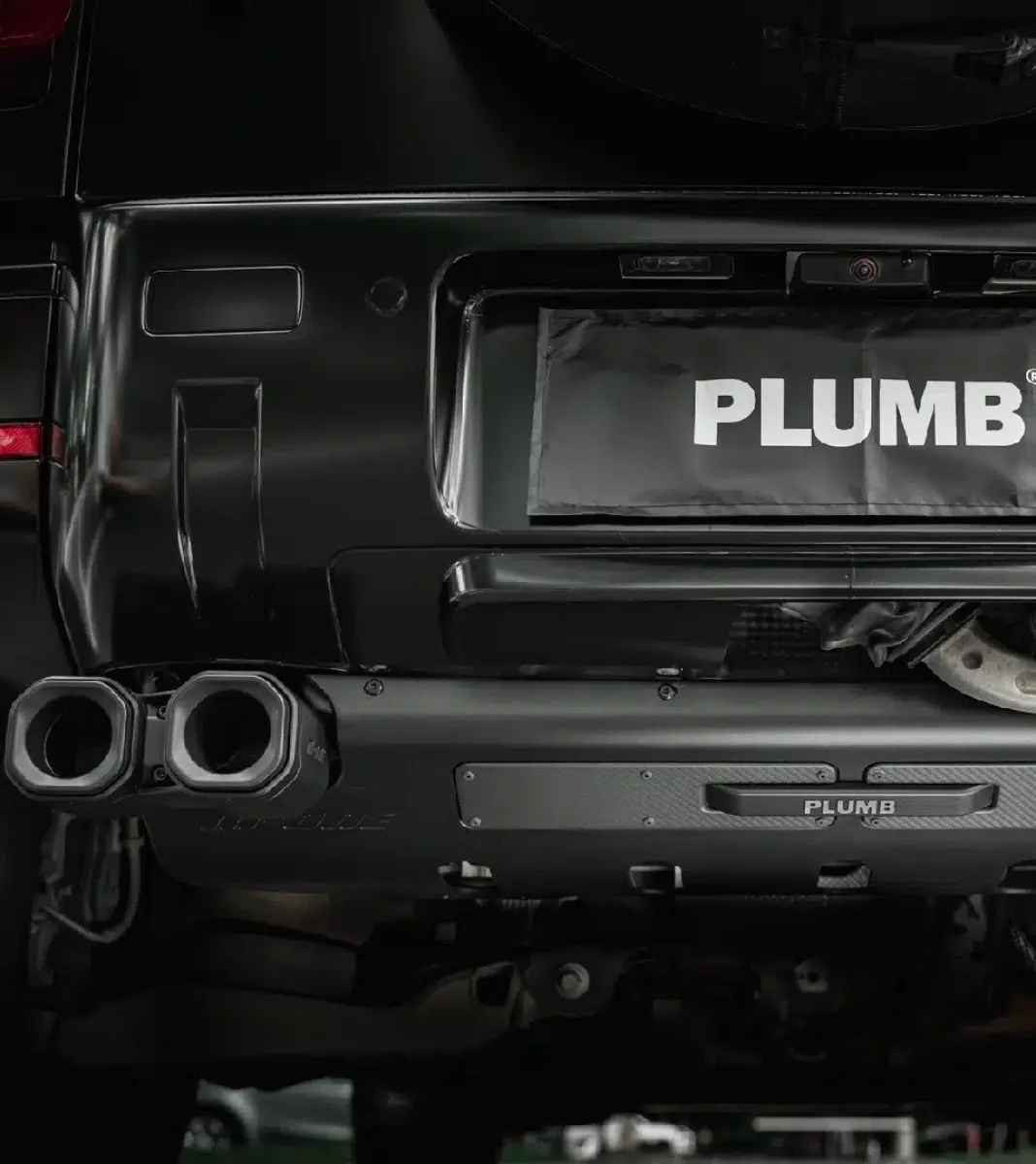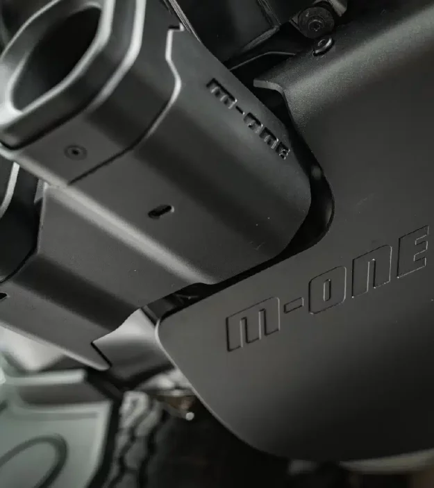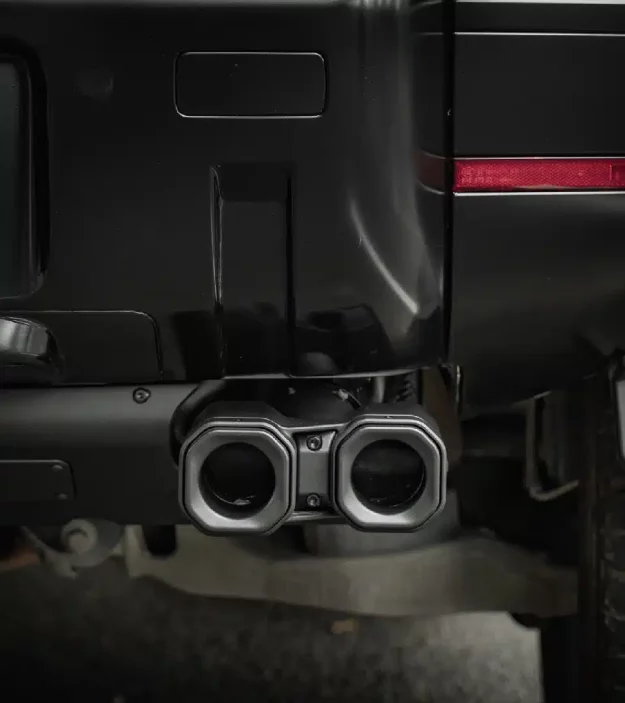 The muffler drum guard conceals contrasting colors, protecting the exhaust system during off-road activities. The staggered tail throat design aligns with the rear bumper’s contours, while a high-temperature-resistant coating ensures lasting durability. The kit’s high-gloss embossed badge and embedded components offer a cohesive, refined appearance that enhances the vehicle’s overall look, even in the Dark Special Edition, without interfering with the electric trailer hook.