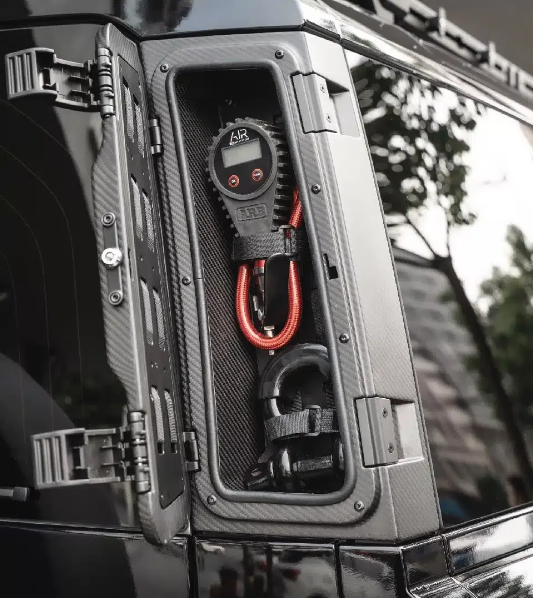 These gear boxes, made from high-quality carbon fiber, are designed to enhance both the performance and aesthetics of your off-road vehicle. The set includes both left and right boxes, each equipped with durable Velcro straps and box lock keys to ensure secure installation and easy access. Crafted from lightweight, high-strength materials, these boxes minimize noise and vibration during driving, improving your overall ride comfort.