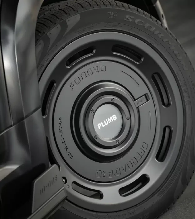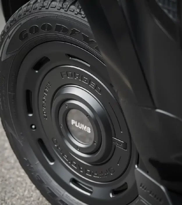 The PLUMB “M-one” forged wheels feature a high-strength thin pancake structure, offering exceptional load-bearing capacity compared to traditional spoke designs.