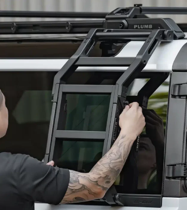 The M-one series ladder not only resolves these problems but also seamlessly integrates with the vehicle, matching the PLUMB roof rack’s design. It strengthens the original waistline position and features an easy-to-use sliding rail and locking switch. The ladder’s unique structural design effectively reduces wind resistance, achieving minimal wind noise. Made from all-aluminum-magnesium alloy with dry carbon fiber inlay.