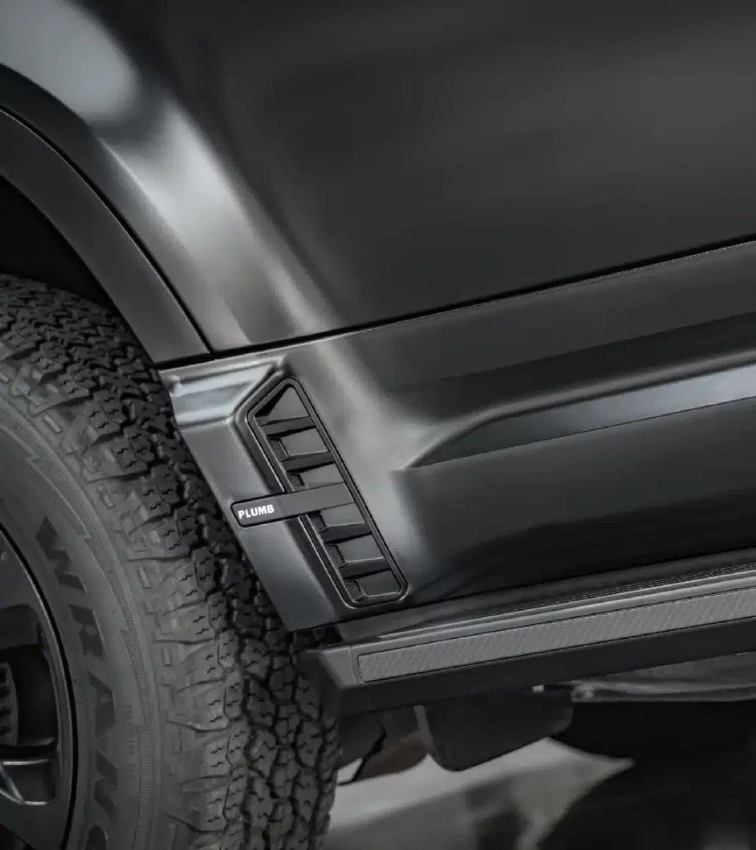 Designed to improve texture, fit, and overall integrity, this kit significantly upgrades the vehicle’s style. It includes the side bar assembly, mounting bracket, wide body trim, and air intake grille. Made with a combination of carbon fiber, aluminum-magnesium alloy, and composite materials, it provides a strong, durable structure without requiring body modifications. The wide-body trim is designed to follow the vehicle’s natural curves, enhancing its performance-oriented look. The kit includes a PLUMB metal embossed badge for added detail. The wide-body trim is factory-painted with white primer, allowing for easy customization to match the vehicle’s color.