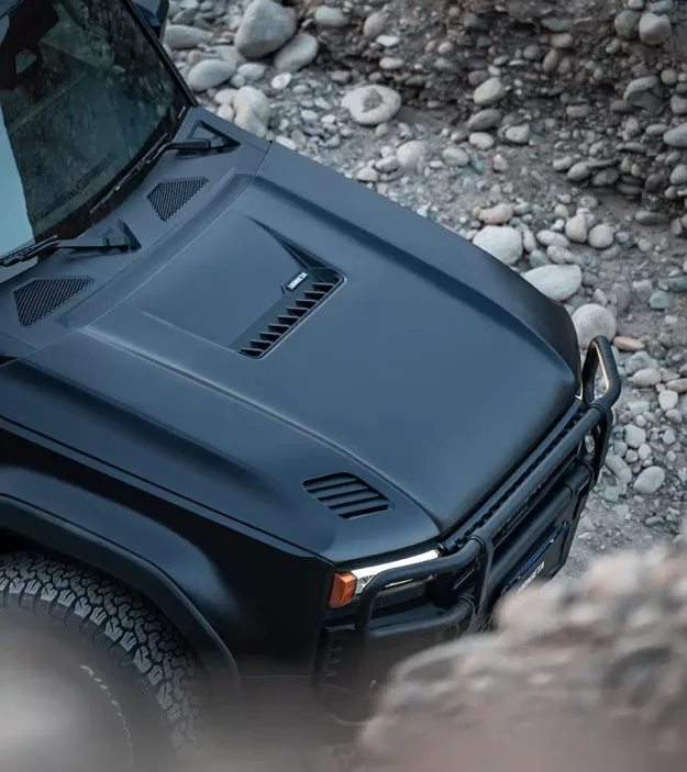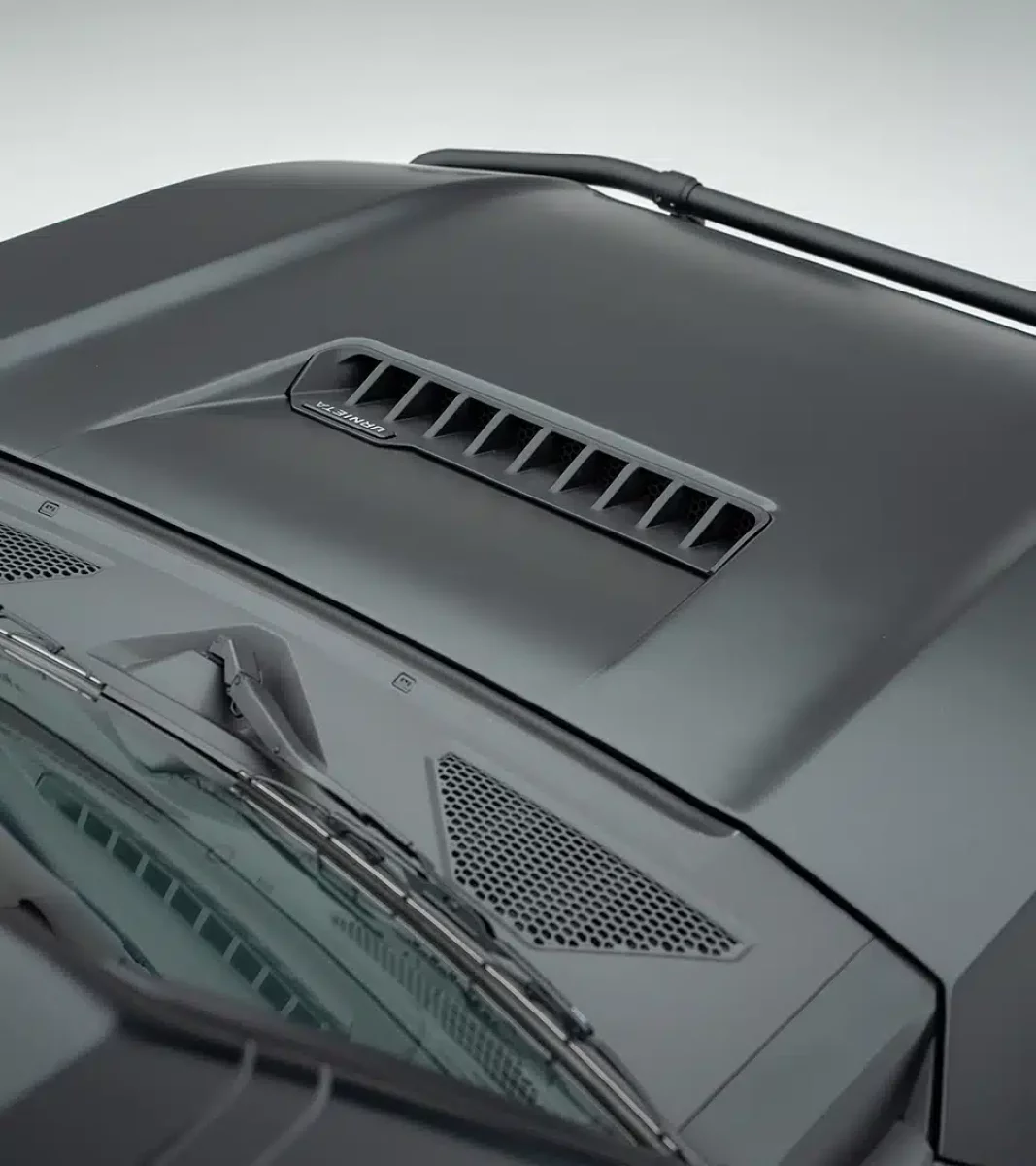 Beyond its performance benefits, the hood’s design includes integrated air intake and exhaust vents, enhancing engine cooling and optimizing airflow during demanding drives. Built for both rugged off-road adventures and sleek urban styling, it seamlessly fits the LC250, offering a direct replacement for the factory hood with no modifications required.