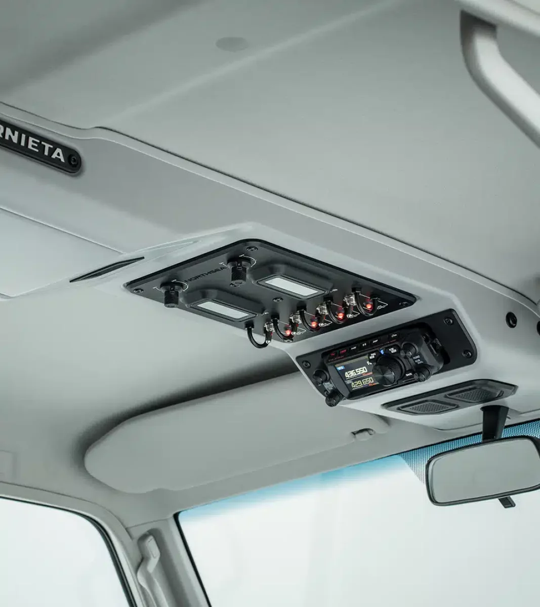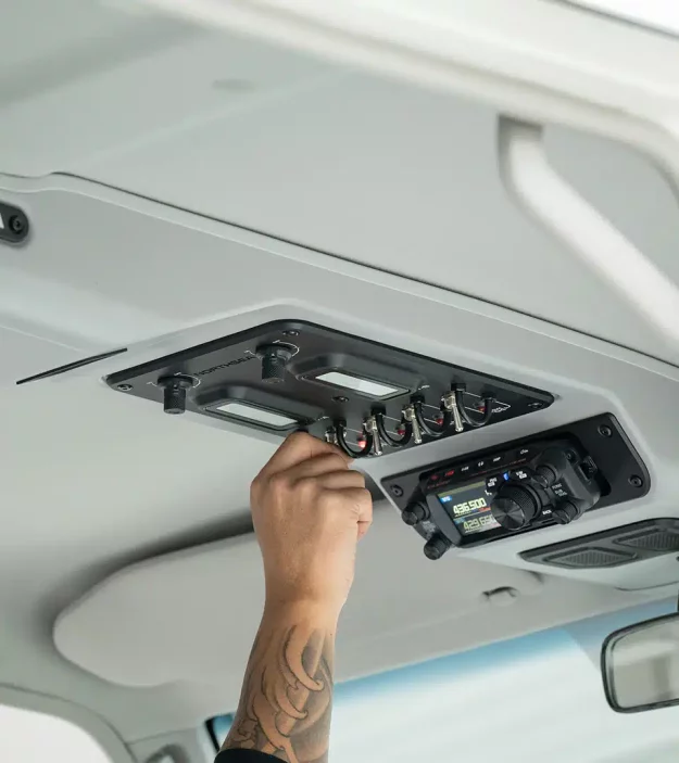 This system integrates key features such as a secure radio speaker mount, easy-to-use control switches, and adjustable front and rear-row lighting to ensure optimal visibility throughout your vehicle.
